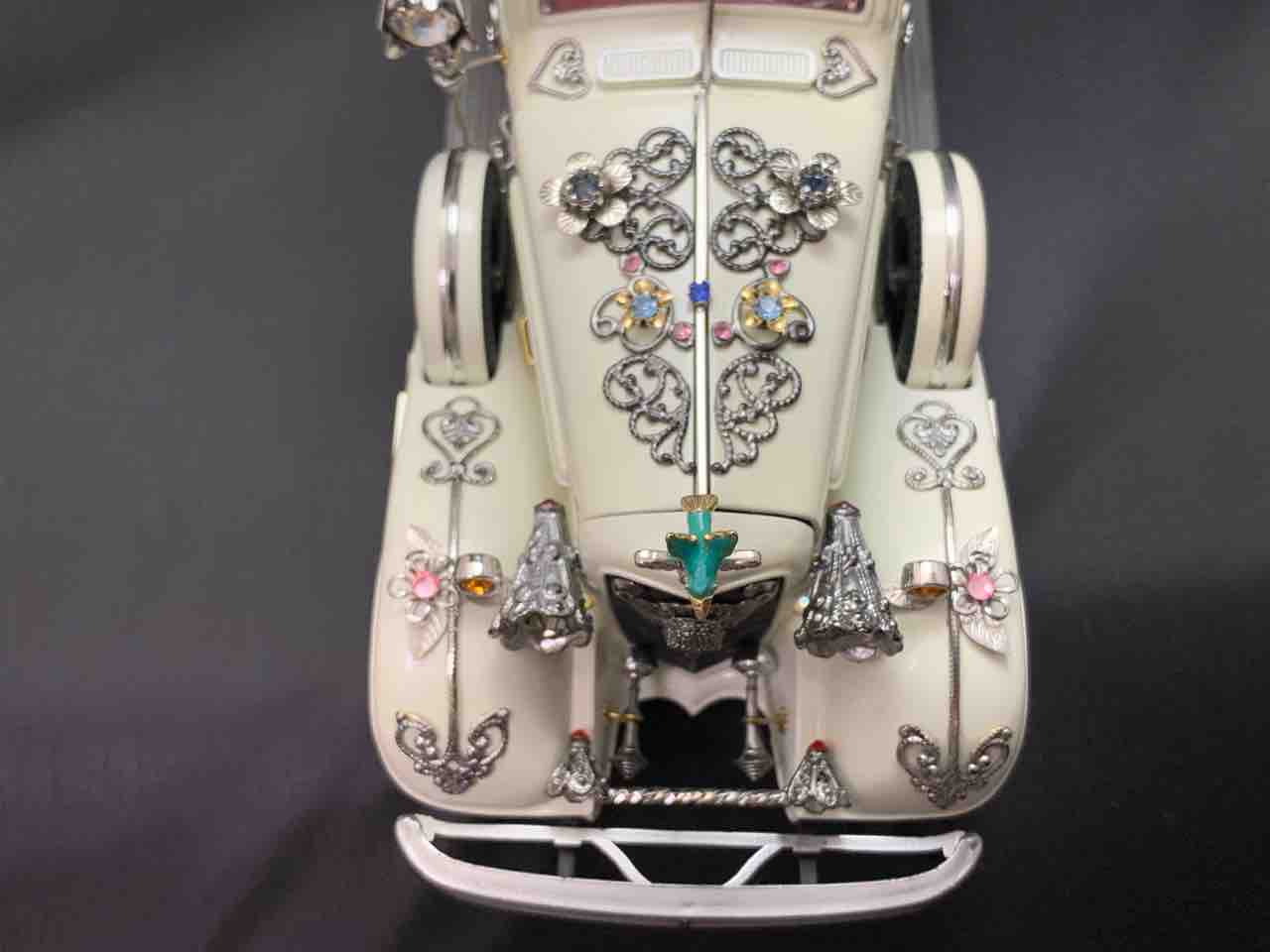 ボディの色は箱絵はホワイトです。確かに資料によると、53年まではホワイト1色で室内色はレッドしか生産されていなかったようですが、54年からブルー、レッド、ブラックが加わって、ブルーだけが室内色ベージュになったということです。いずれも私も生まれてない頃の話です。
